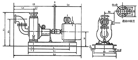 | 泵型號 | 電動(dòng)機(jī) | L | L1 | L2 | L3 | L4 | L5 | L6 | L7 | δ | H | H1 | H2 | H3 | B | B1 | B2 | n-d | D1 | D2 | D3 | n1-d1 | |||||