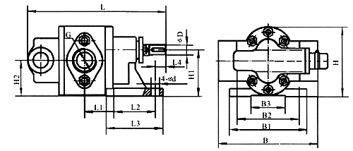 | 型號 | L | L1 | L2 | L3 | L4 | B | B1 | B2 | B3 | H | H1 | H2 | φD | G | 4-φd |