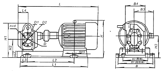 | 型號 | L | L1 | L2 | B1 | B2 | B3 | H | H1 | H2 | φ1 | φ2 | φ3 | n-d | φD | 4-φd |