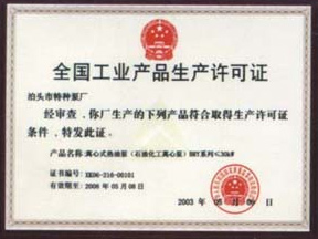 此證書(shū)為國(guó)家強(qiáng)制執(zhí)行標(biāo)準(zhǔn),凡生產(chǎn),銷(xiāo)售,使用無(wú)此證之離心熱油泵產(chǎn)品,均屬違反國(guó)家法令。