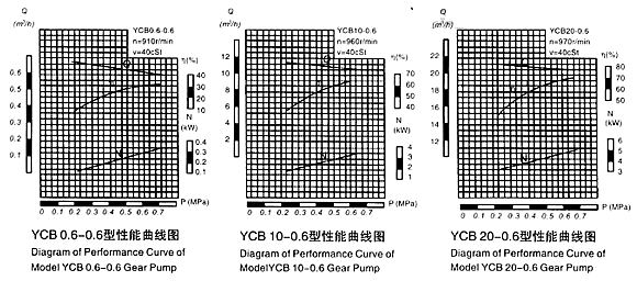 各型齒輪泵的性能參數(shù),是在介質(zhì)粘度4×10-3m2/s(40cSt)時(shí)確定的。性能參數(shù)表中給出的參數(shù)值適用于介質(zhì)粘度1×10-5~8×10-5m2/s(10~80cSt)范圍內(nèi),超出這個(gè)范圍則根據(jù)用戶提出的性能參數(shù)要求另行確定。