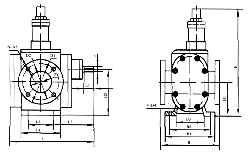 | YCB0.6-0.6 | 0.6 | 506 | 50 | 22.5 | 280 | 421 | 155 | 115 | 232 | 136 | 125 | 222 | 252 | φ25 | φ75 | φ100 | 4×M10 | 4×φ14 | 38.5 |